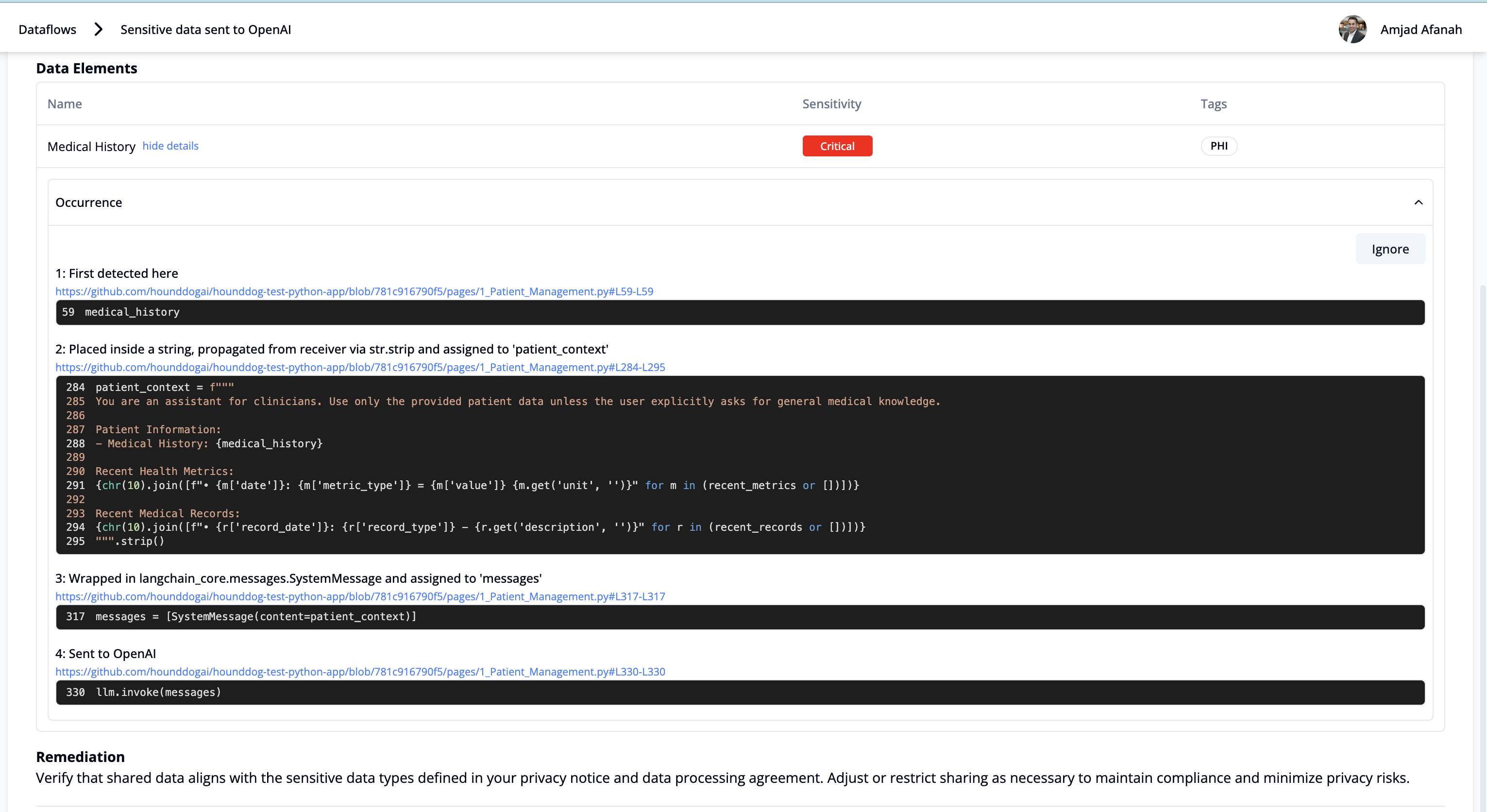 Risky data flows are rarely intentional. They tend to emerge as codebases grow. A developer may print a full user object for debugging, or a tainted variable may carry PII through multiple transformations. By the time anyone notices, the data may already be logged or sent to a third party.