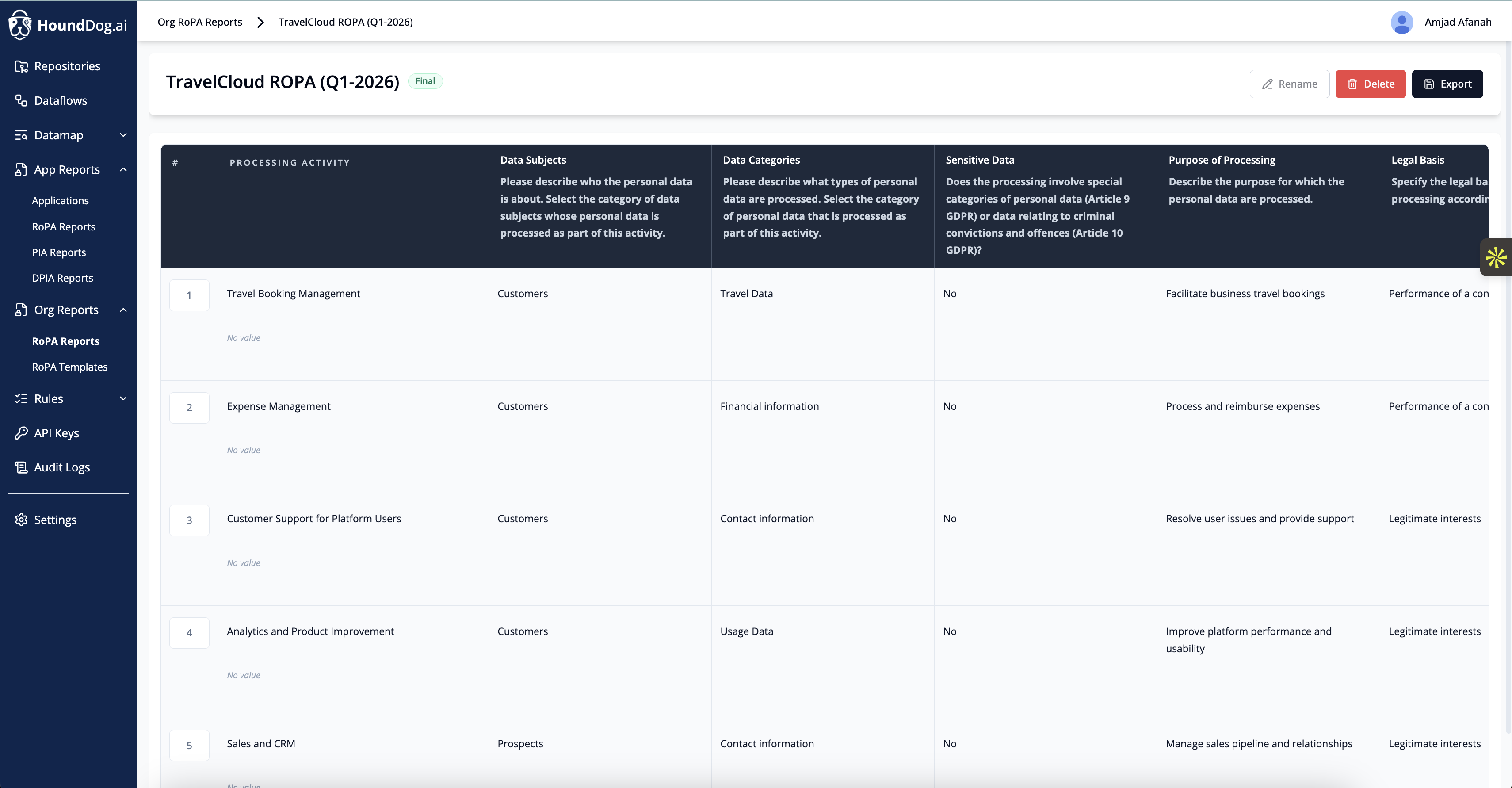 Org Reports are available on the Enterprise plan. Contact your HoundDog.ai account team to enable the Org RoPA for your organization.