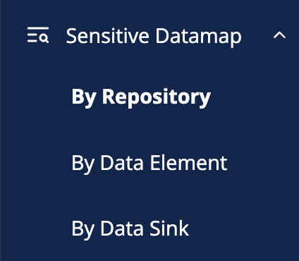 There are three ways a sensitive data map can be viewed: by code repository, by data element, or by data sink.