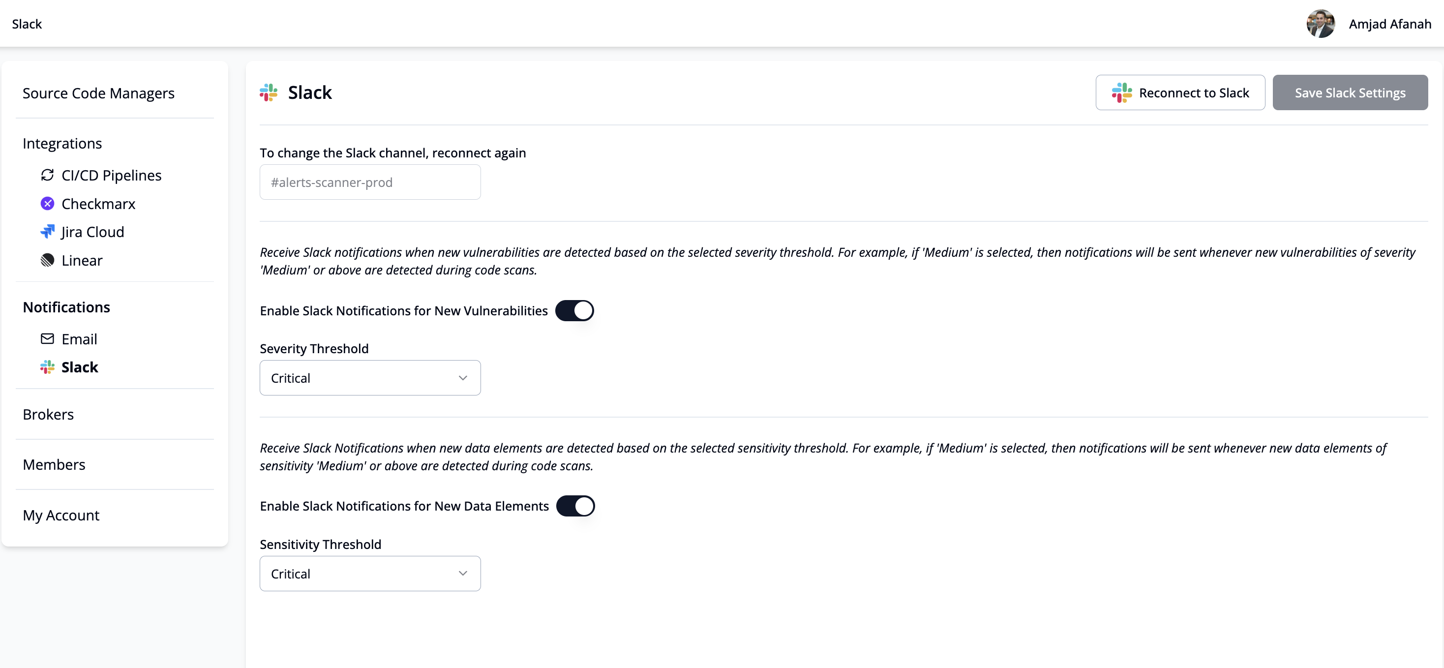 Enable notifications for new sensitive data leak vulnerabilities or data elements detected based on their severity and sensitivity levels, respectively.